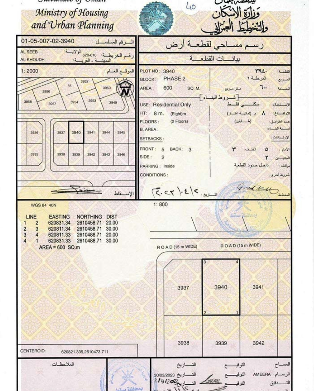 مميزات الأرض و الخدمات: على شارع مرصوف ،تبعد500 متر عن جامع المبين ، بالقرب من مركز حي الجامع الصحي ومنتزة الخوض ،مقابل بوابة مجمع الإبتكار .