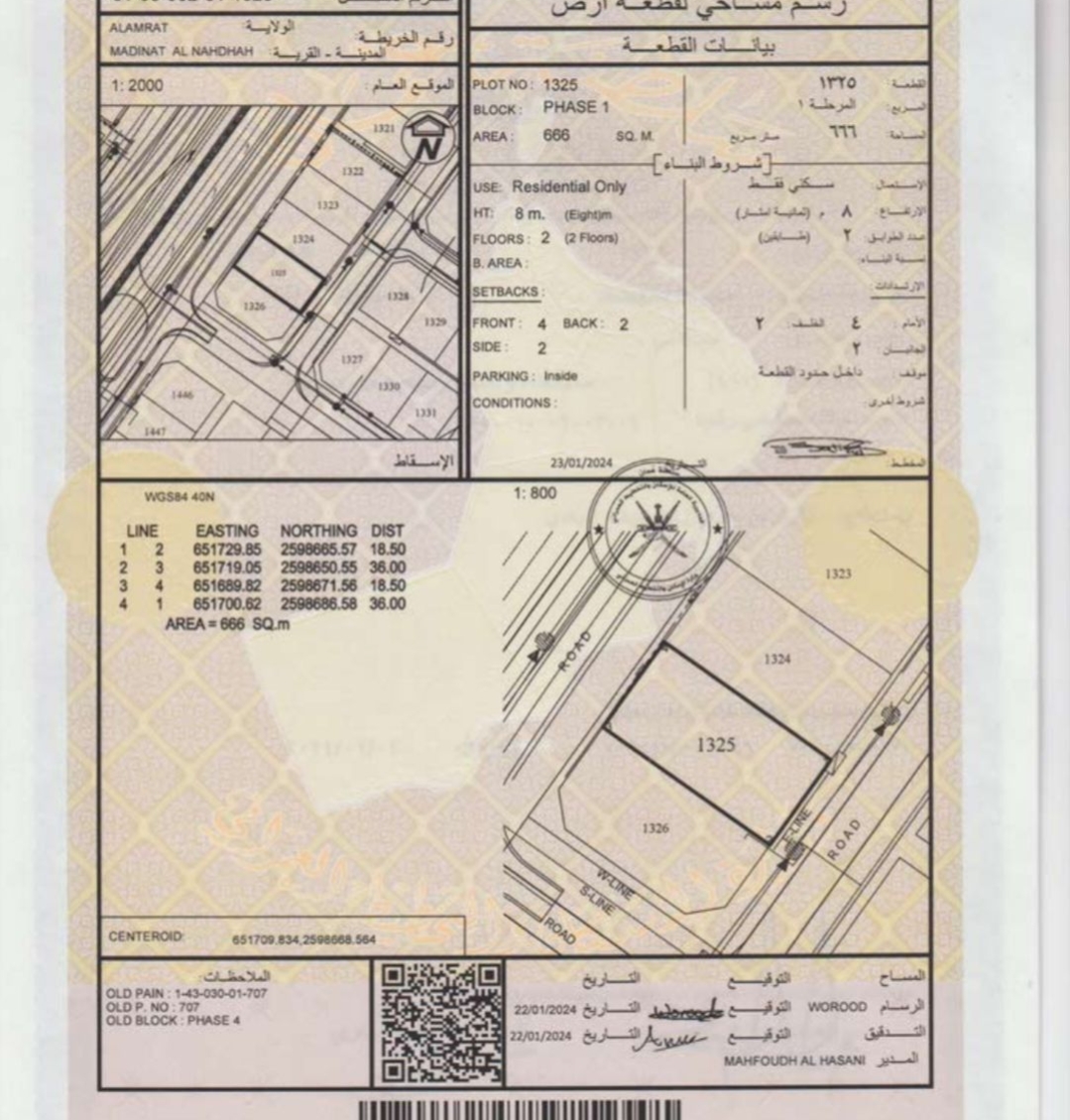 مميزات الأرض و الخدمات: مفتوحة من جهتين على شارعين منطقة ممتازه على شارع الجود .