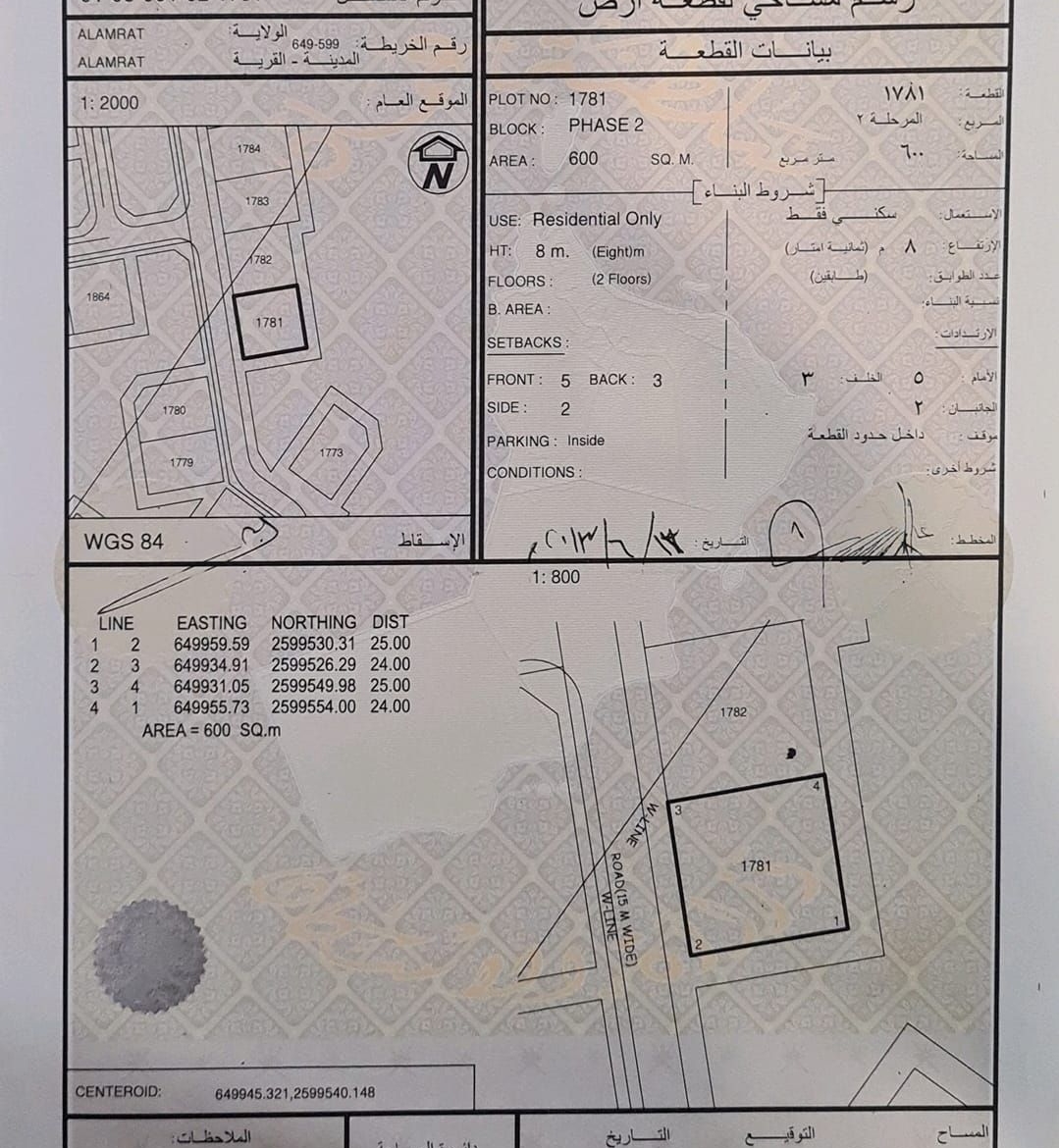 مميزات الأرض و الخدمات: نظيفة ومستوية وقابلة للتمديد .