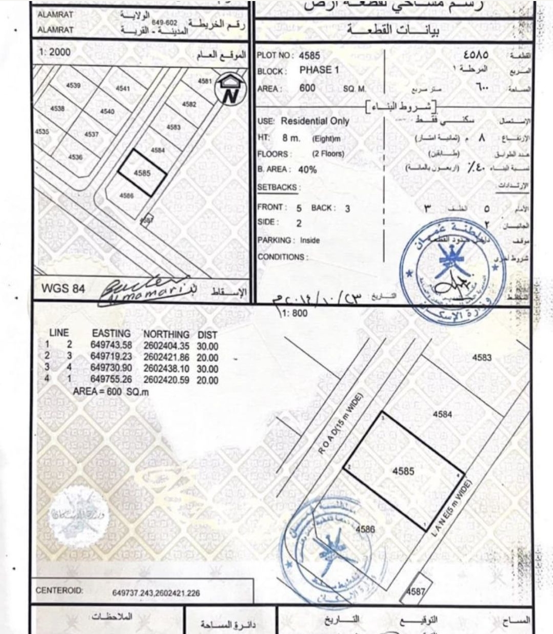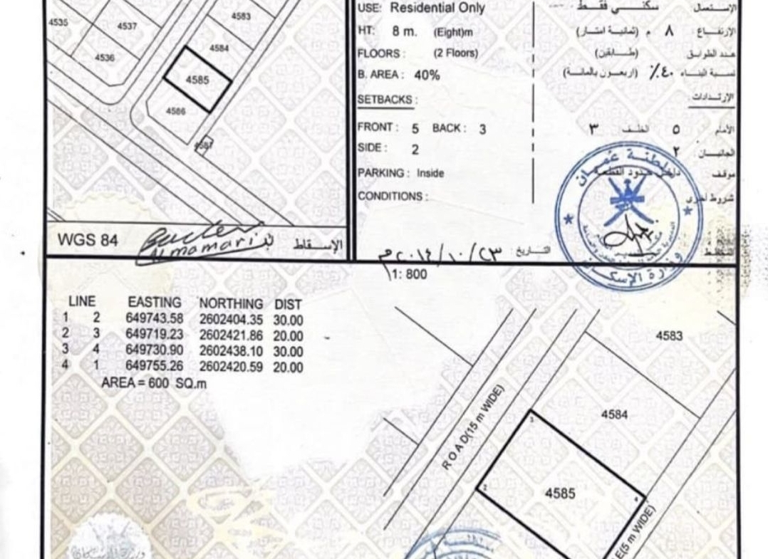 مميزات الأرض و الخدمات: مفتوحة من جهتين أمام وخلف ،موقع ممتاز بالقرب من نفط عمان وعقبة بوشر ،جاهزة للبناء وبالقرب من كل الخدمات .