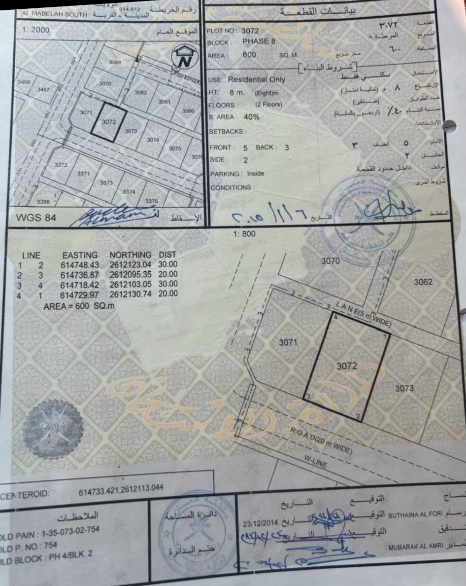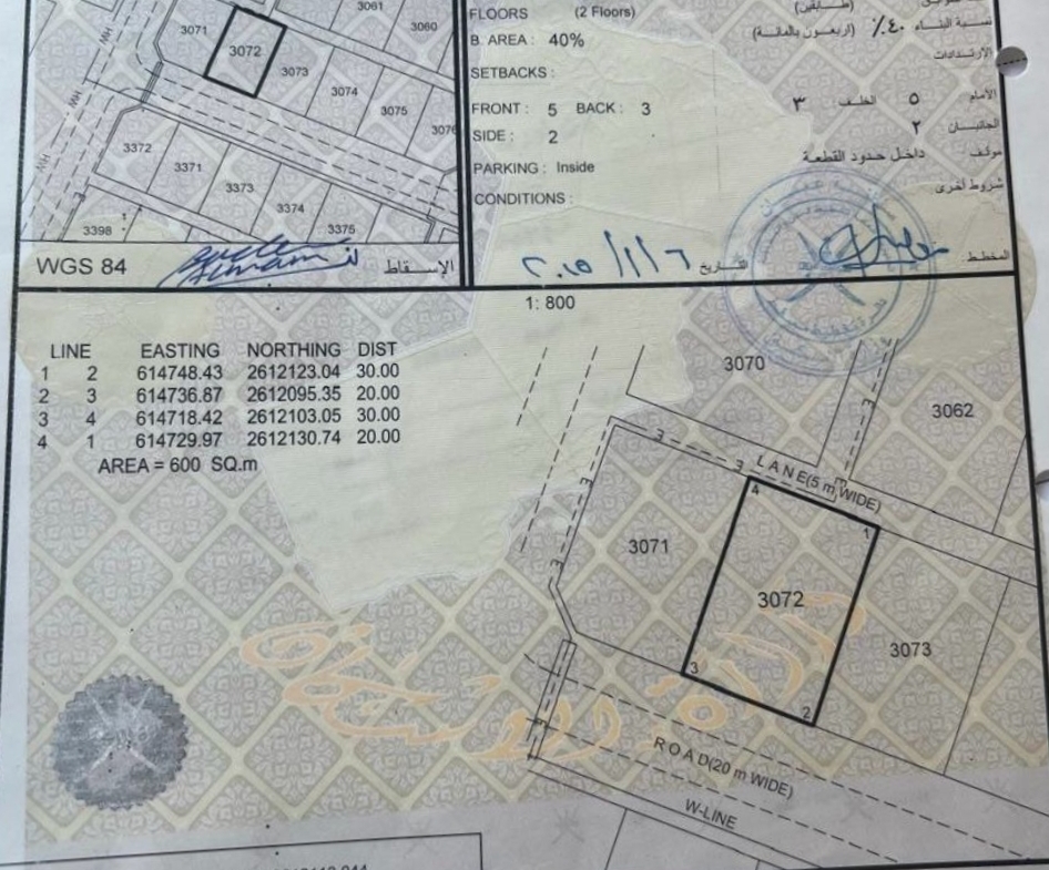 رقم الأرض : 3072