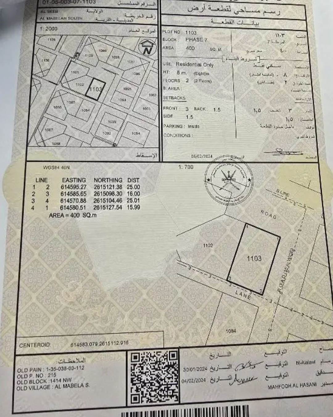 رقم الأرض : 1103