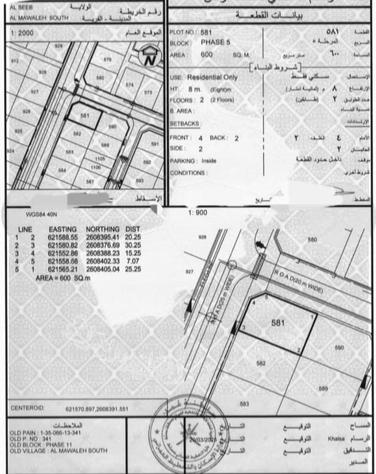 مساحة الارض: 600 متر مربع