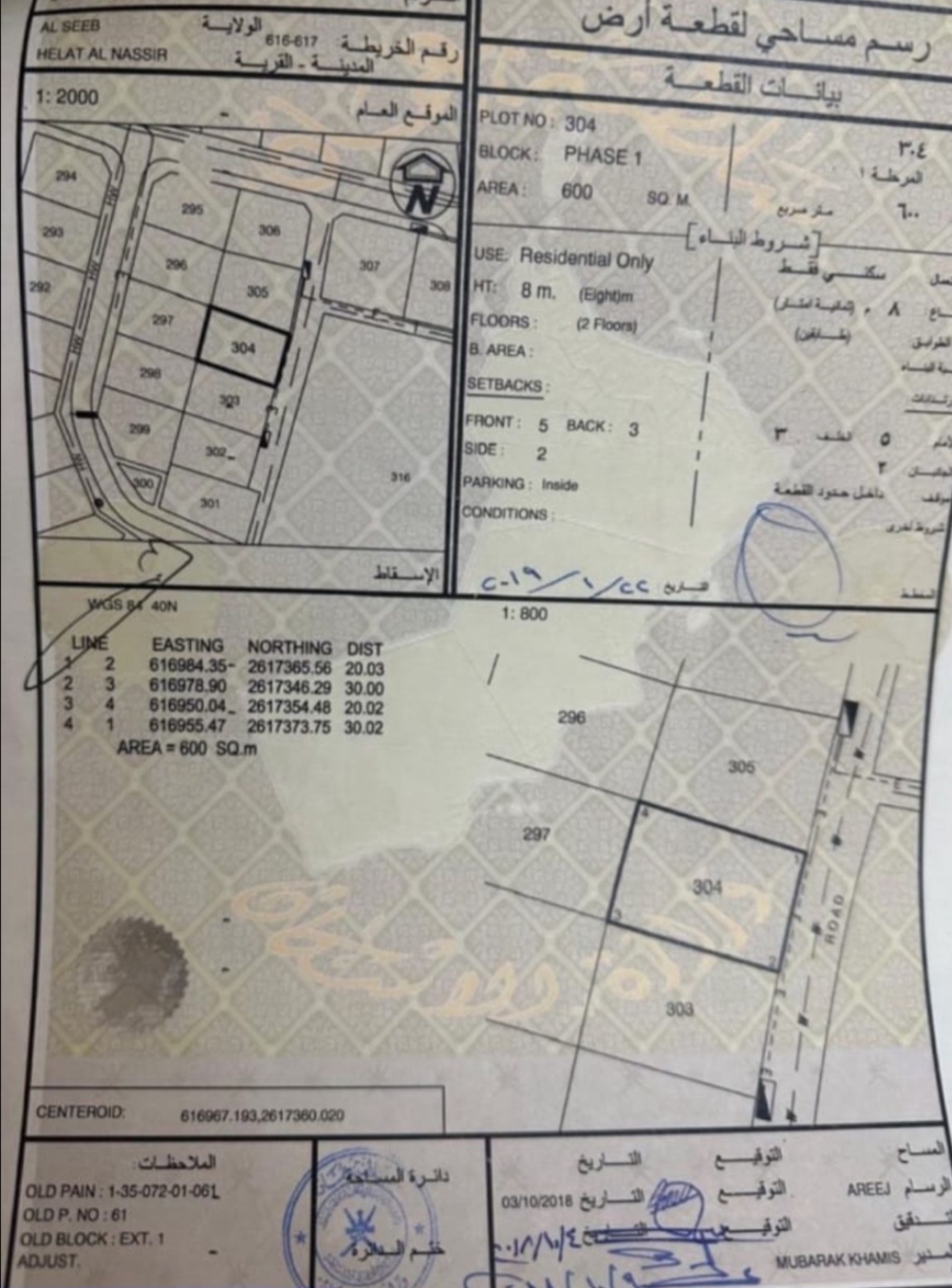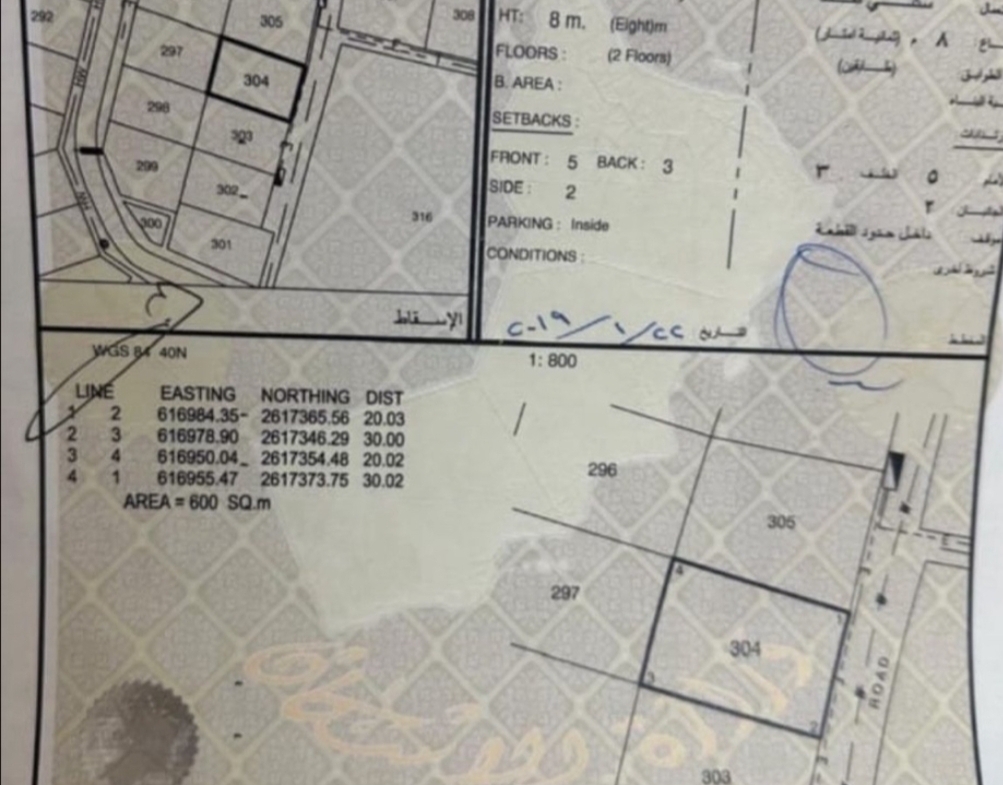 مميزات الأرض و الخدمات: على شارع مرصوف ، قريبة من مسجد النور والشارع السريع ، موقع ممتاز بكل الخدمات.