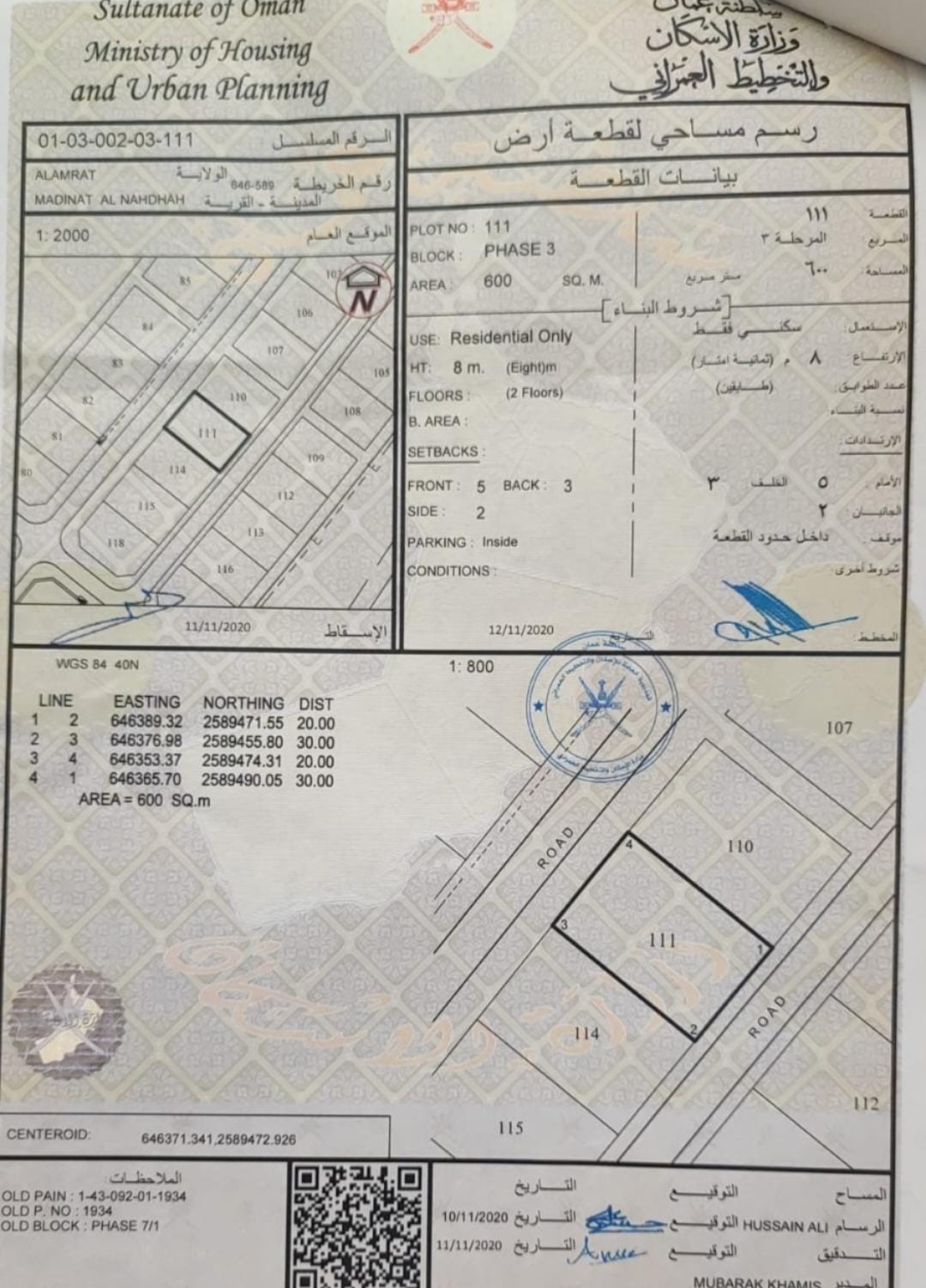 مميزات الأرض و الخدمات: مفتوحة من جهتين أمام وخلف على شارعين ، مقابل مربع 12 ، بالقرب من الشارع الرئيسي ، ممتازة لبناء توين فيلا.
