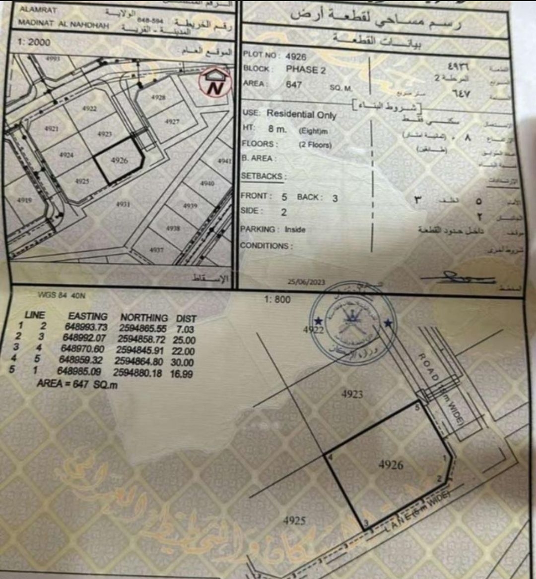 مميزات الأرض و الخدمات: ثالث خط من الشارع المرصوف ،ملاصقة لمسجد المؤمنون ، مستوية تماما وجاهزة للبناء بالقرب من كل الخدمات .