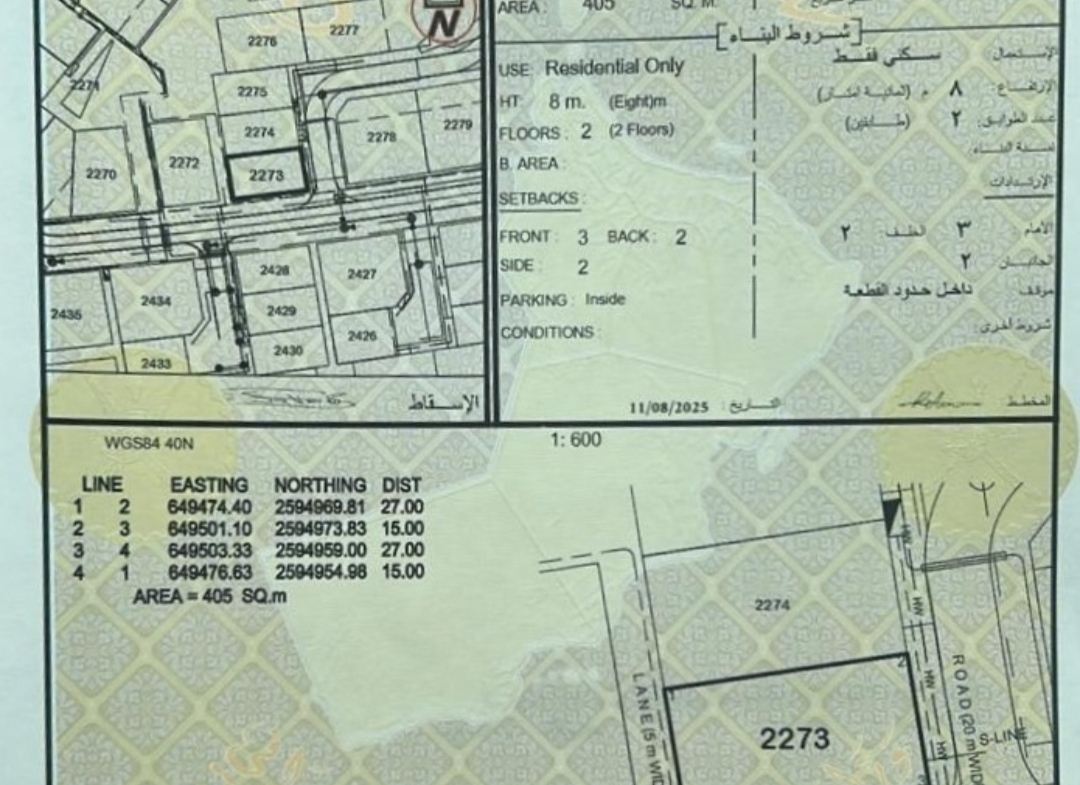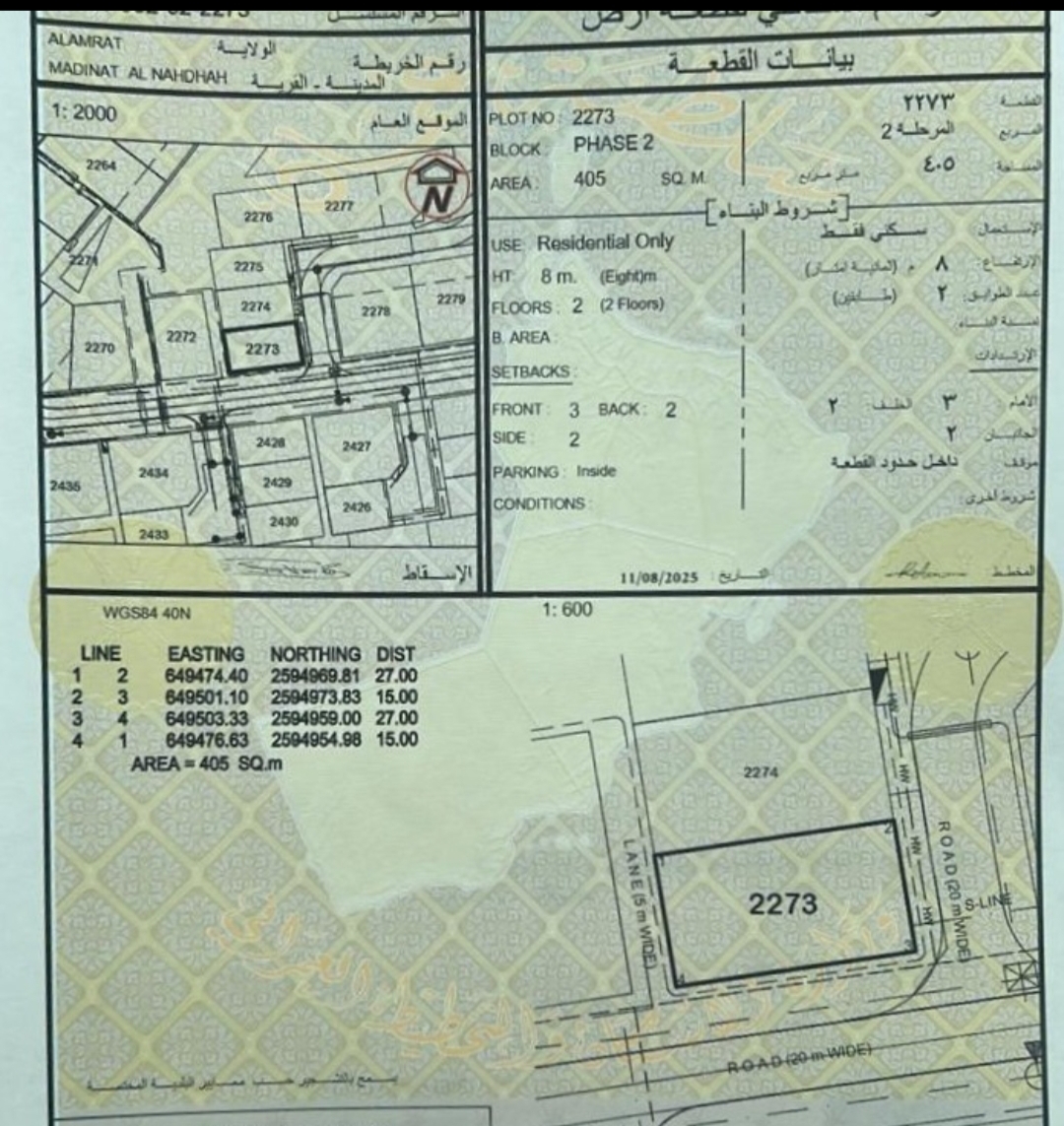 مميزات الأرض و الخدمات: مفتوحة من ثلاث جهات على شارعين وسكة ، بالقرب من مسجد المؤمنون .