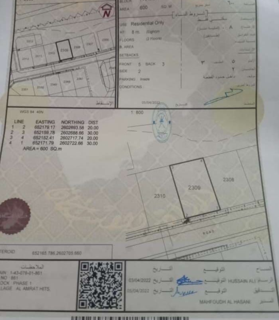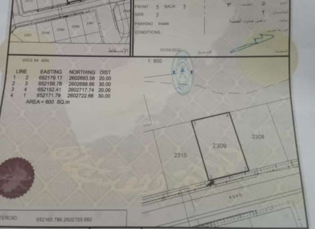 مميزات الأرض و الخدمات: موقع ممتاز ، مفتوحة من جهتين .