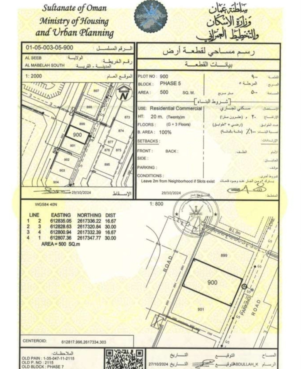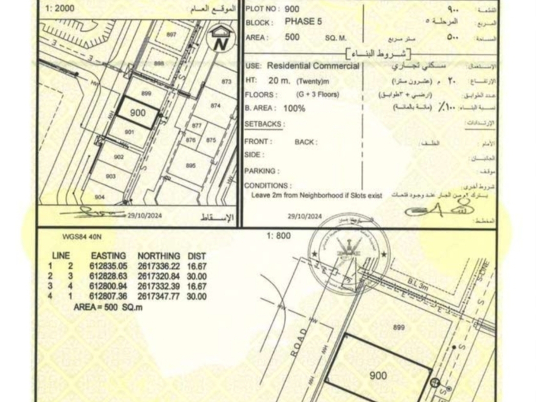 أرض تجارية مفتوحة كل الجهات للبيع بمرتفعات العامرات