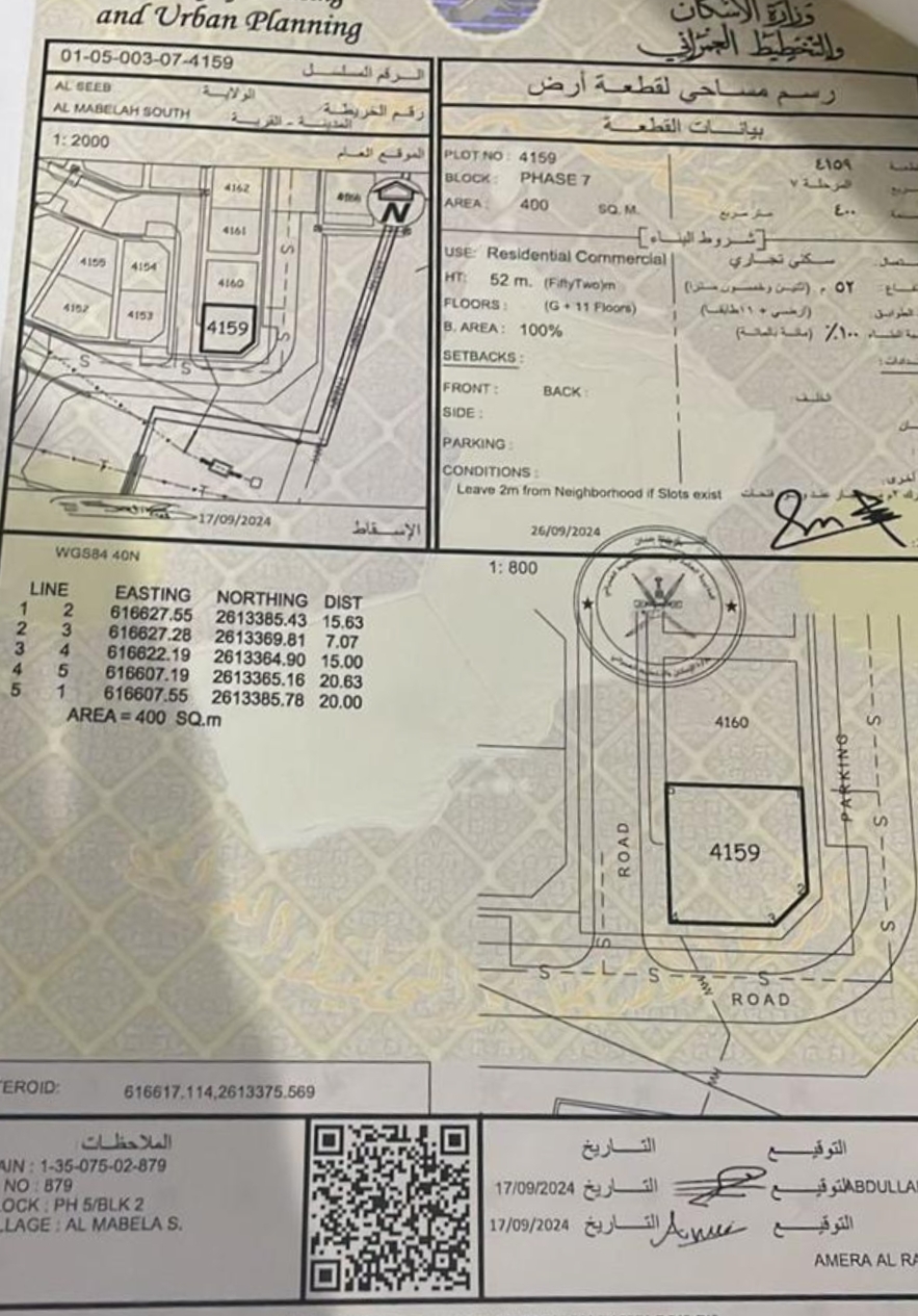 بجانب مسقط مول ومفتوحة 4جهات أرض تجارية للبيع
