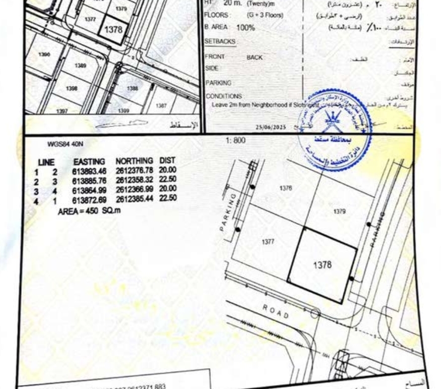 مميزات الأرض و الخدمات: بالقرب من شارع النور ،وسط الحي السكني وبجانب مباني تجارية قائمة .