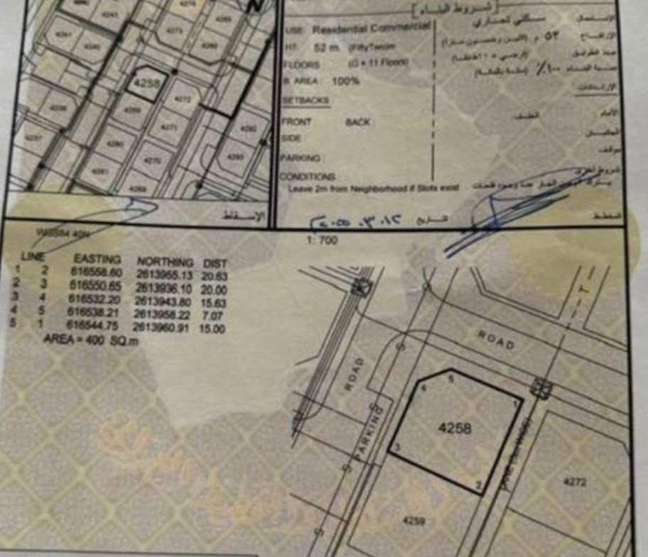 مميزات الأرض و الخدمات: موقع مميز على شارعين وسكة ،وسط بنايات قائمة وجاهزة وقيد الإنشاء ،مصرح ل12طابق وسهلة الوصول من شارع النزهه .