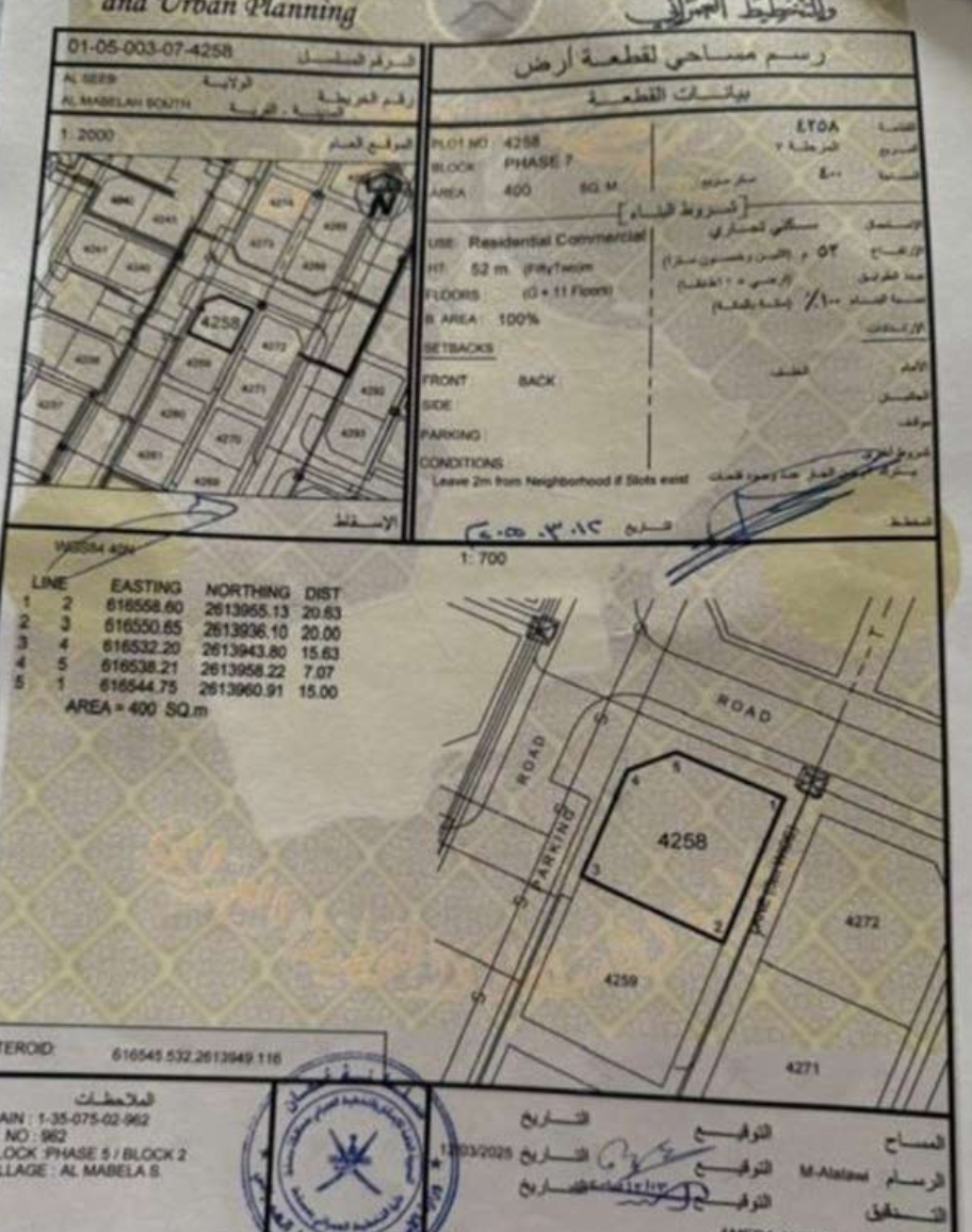 بجانب مسقط مول ومفتوحة 4جهات أرض تجارية للبيع