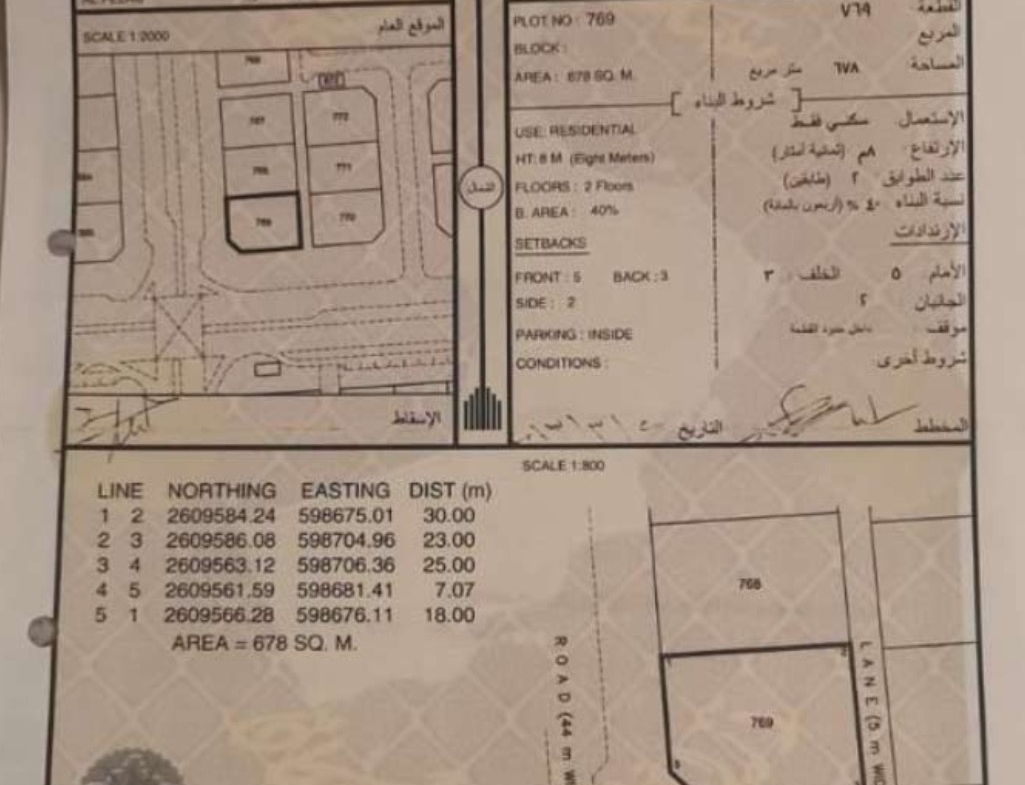 أرض سكنية سوبر كورنر للبيع بالفليج في ولايه بركاء