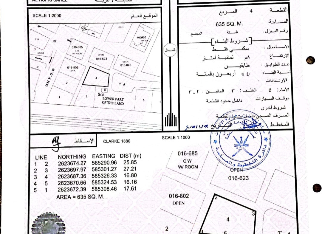 أرض سكنية مميزة زاوية في الحفري بولاية بركاء