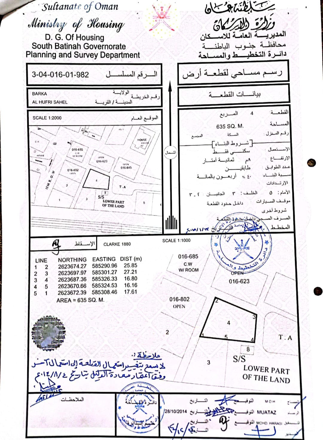 أرض سكنية زاوية للبيع في ولايه بركاء [السوادي]