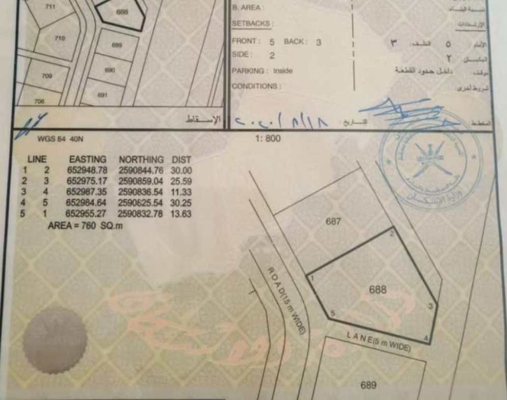 مساحة الأرض : 760 متر مربع