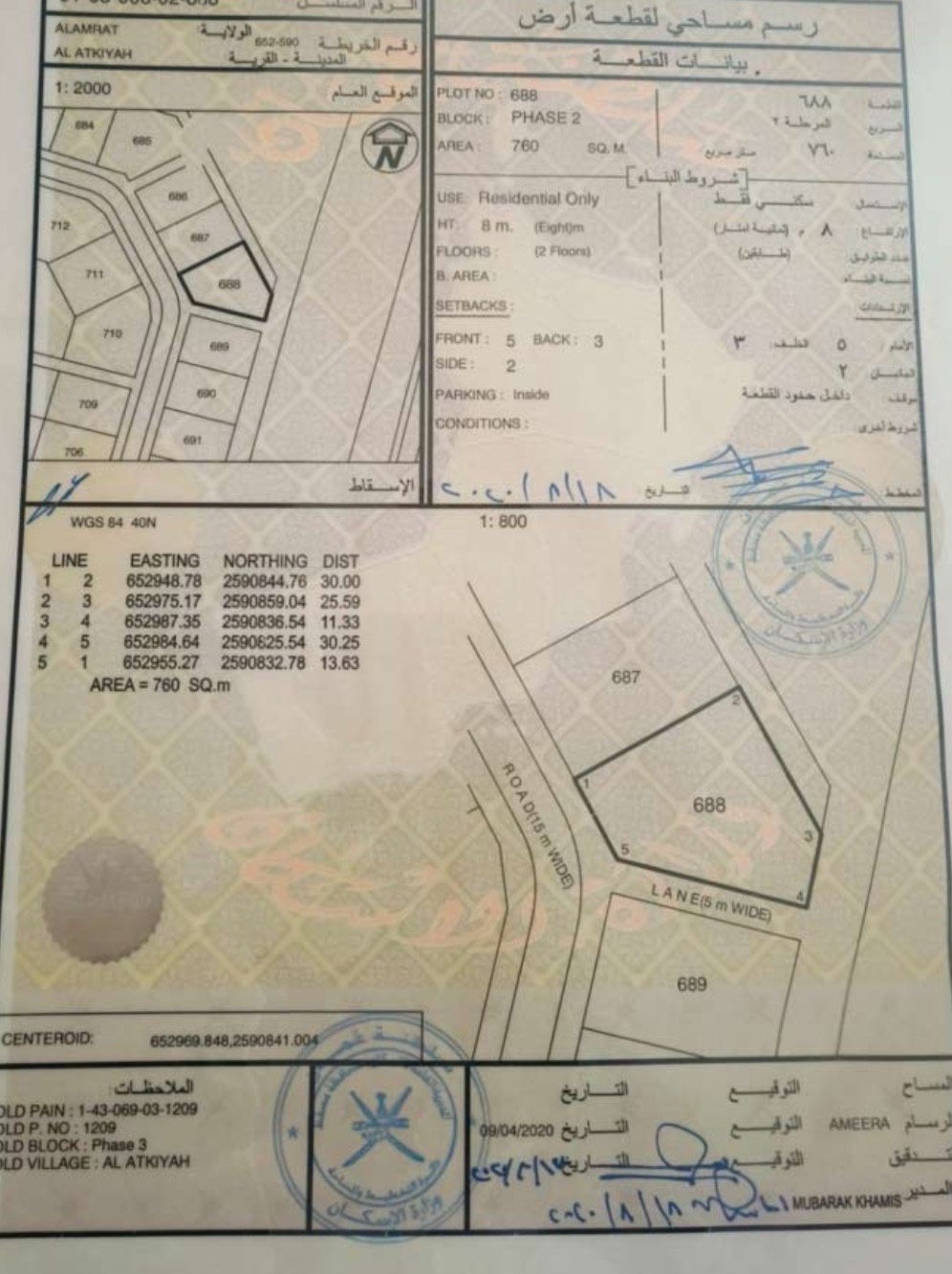 رقم الأرض : 688