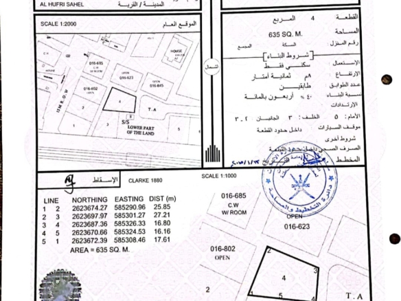 أرض سكنية مميزة وسطية في الحيل بولاية السيب