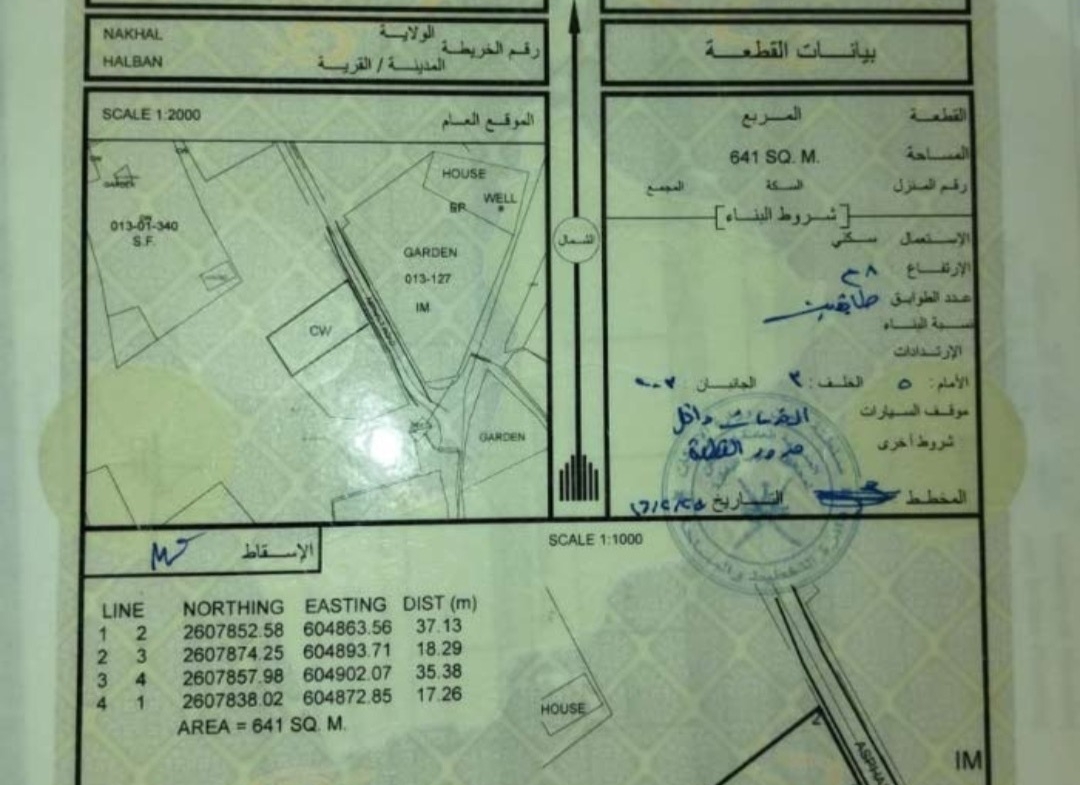 أرض سكنية وسطية في ولاية نخل [حلبان]