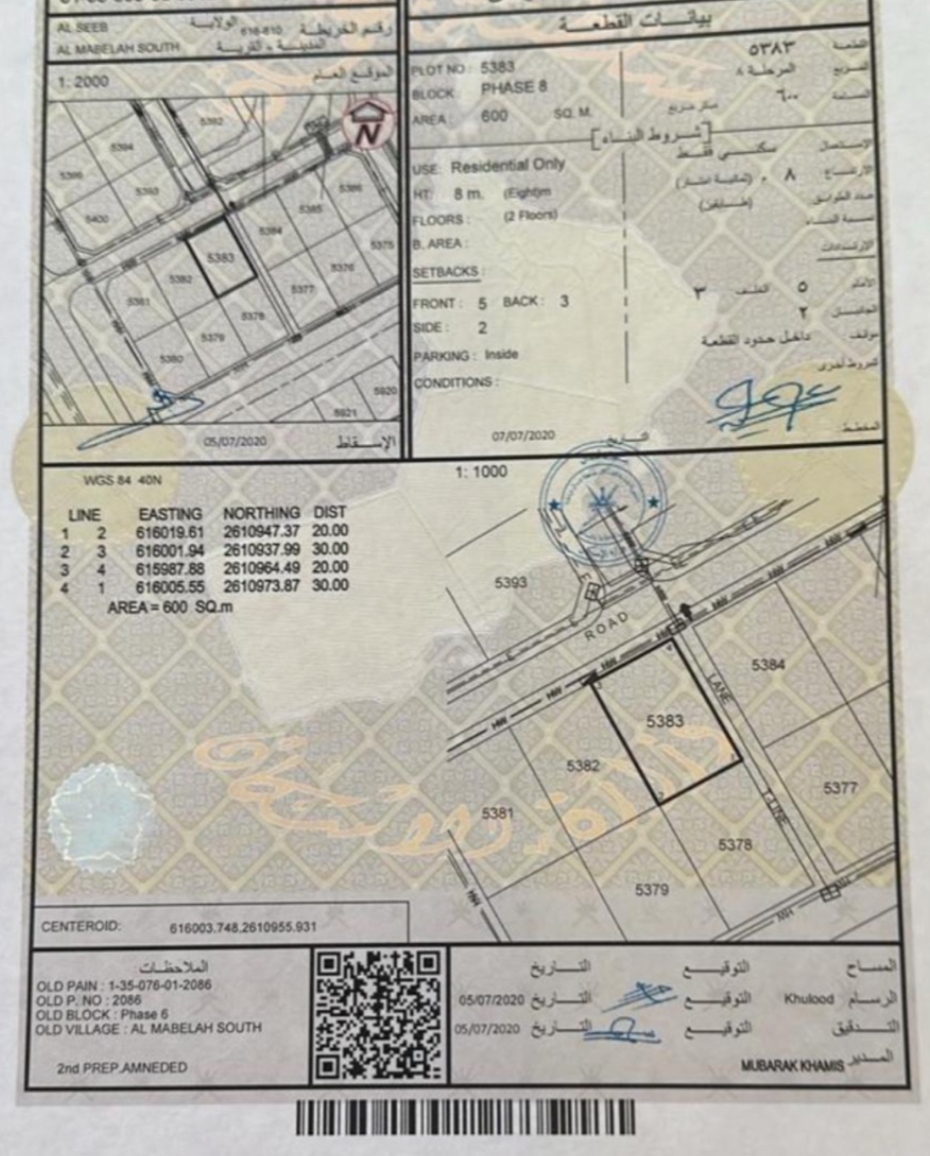 عرضية على شارع وسكتين أرض للبيع بالمعبيلة الجنوبية