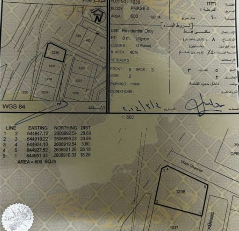 مميزات الأرض و الخدمات: على شارعين وفضاء مواقف ، واجهه عريضة .
