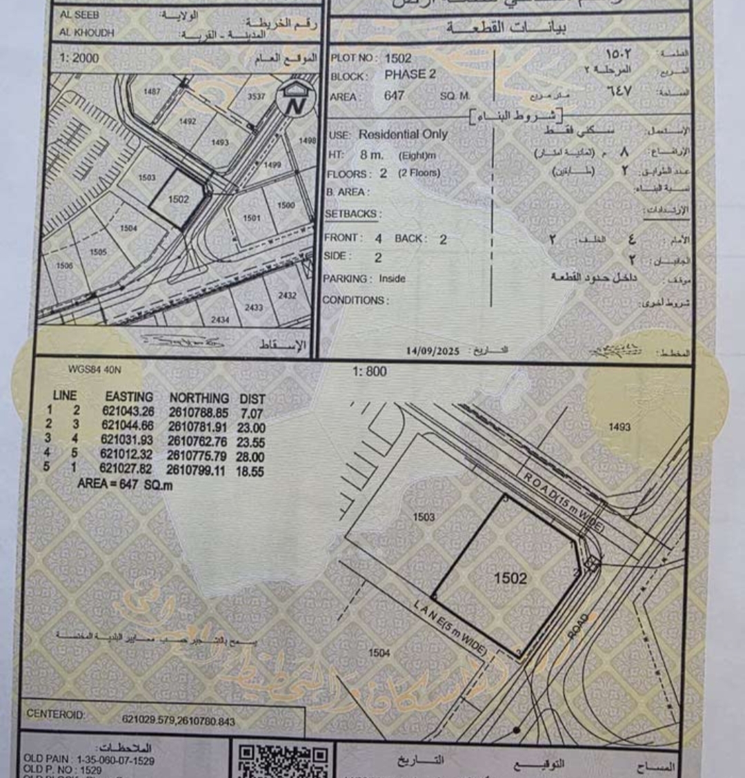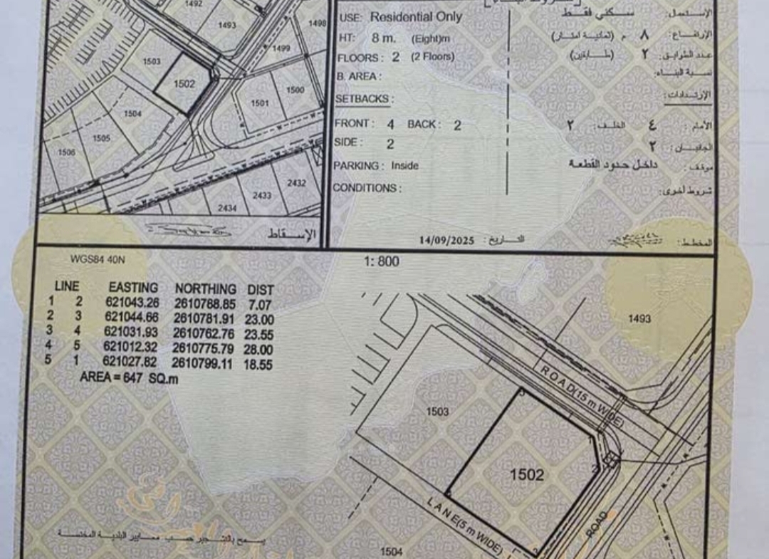 أرض مميزة كورنر عرضية بالخوض السابعة للبيع