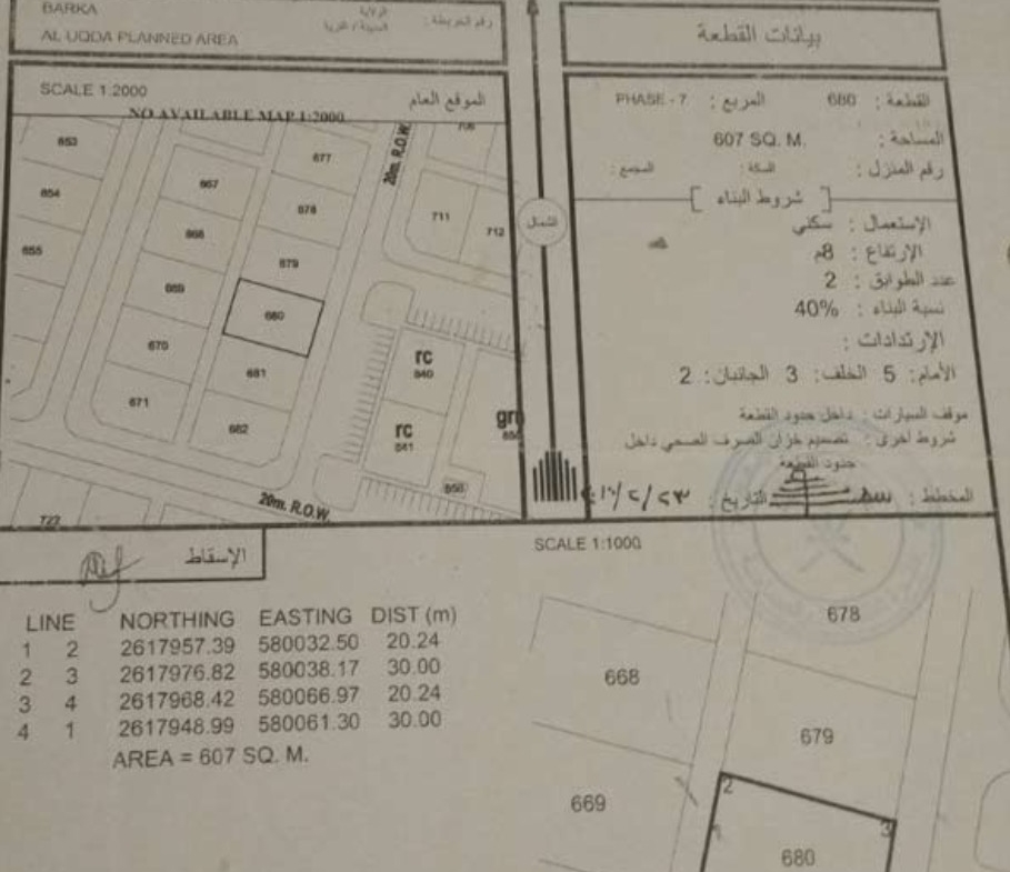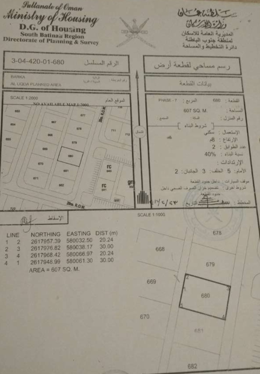 أرض سكنية زاوية للبيع في ولايه بركاء [السوادي]