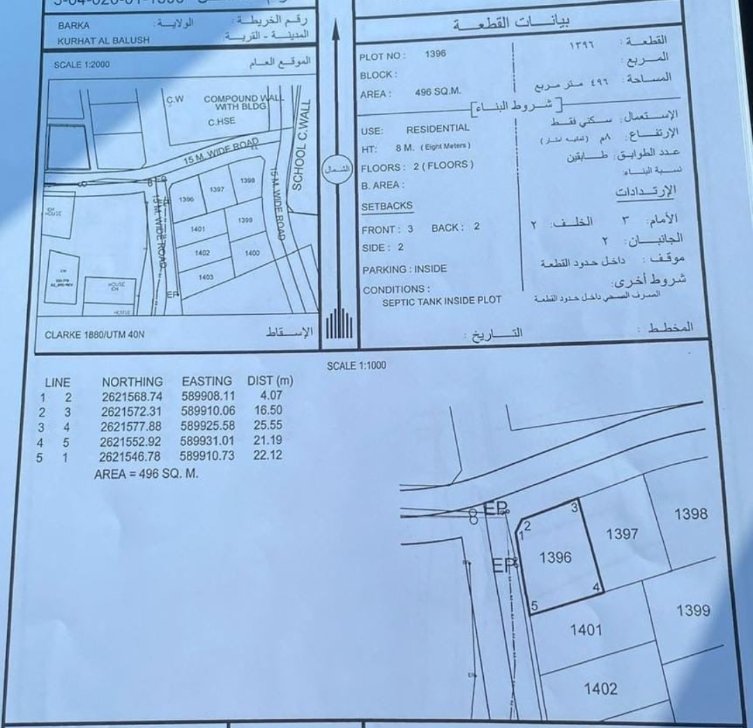 مميزات الأرض و الخدمات: خلف سوق بركاء ، بالقرب من مدرسة عمرو بن جموح موقع ممتاز بكل الخدمات.