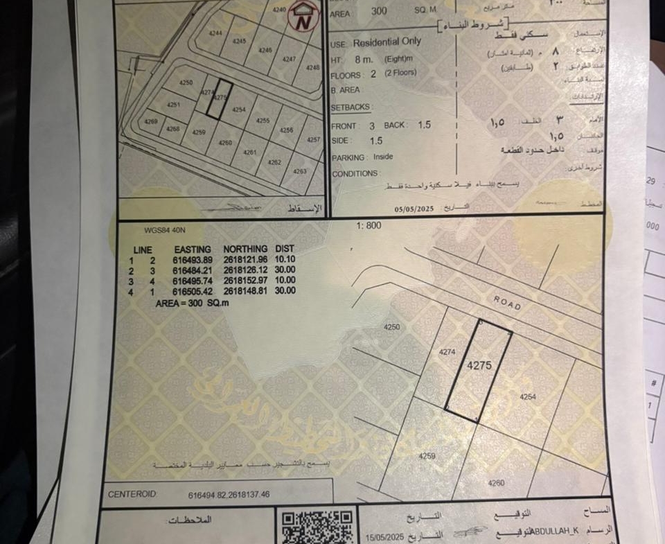 مميزات الأرض و الخدمات: على شارع مرصوف من شارع السلطان قابوس مع انارة .