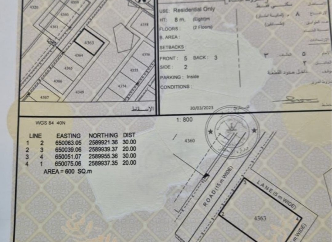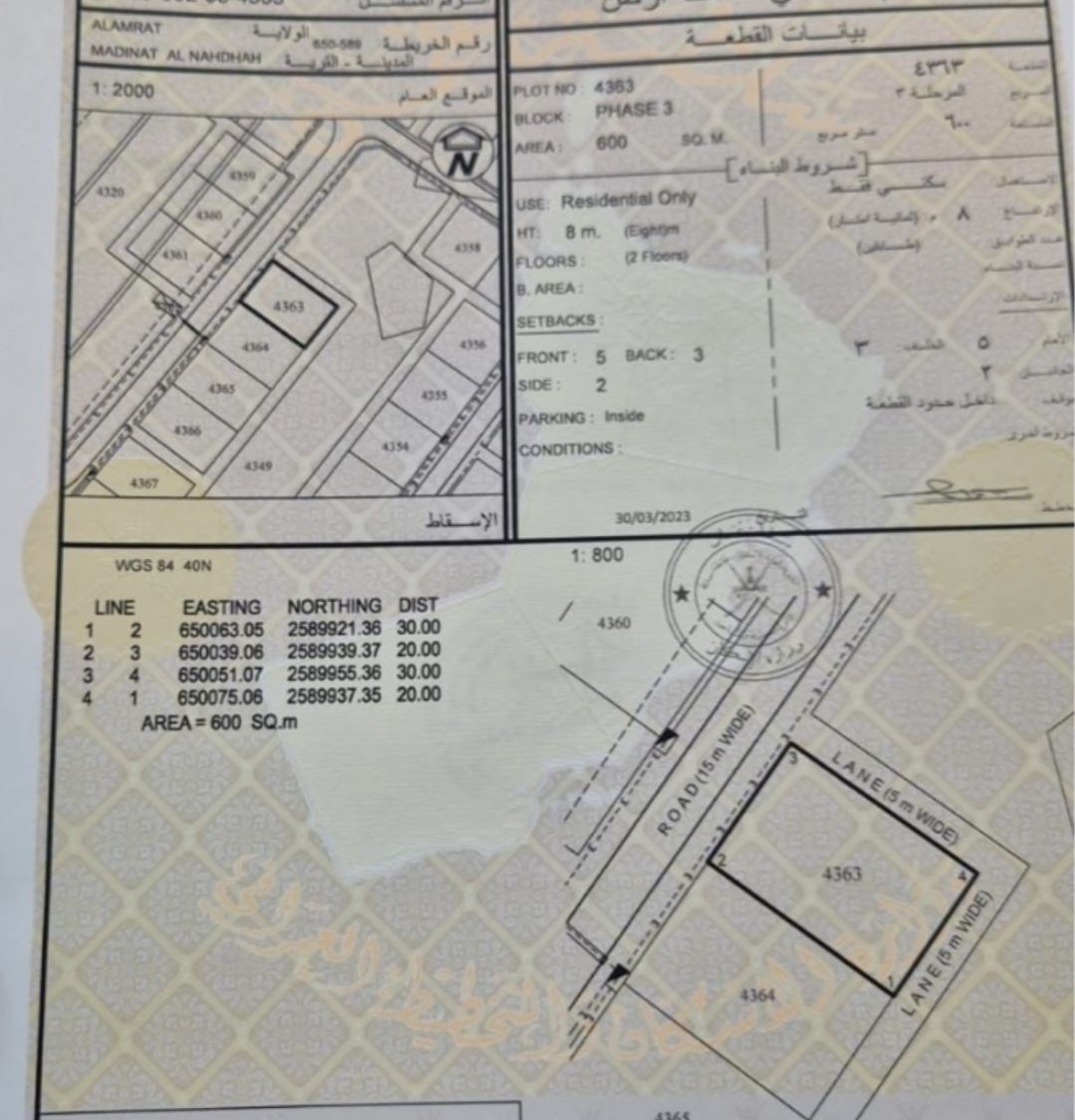 مميزات الأرض و الخدمات: مربع 11 ، مفتوحة من ثلاث جهات وقريبة من بيوت قائمة .