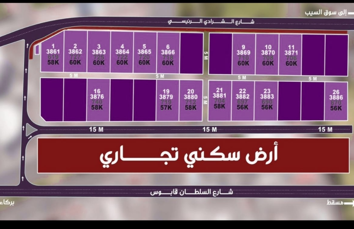 يقع المخطط على الخط الاول من الشارع العام ومن الخلف على شارع الشرادي الرئيسي يبعد المخطط 200 متر من محطة نفط عمان المعبيلة الشمالية و 5 دقائق من مكاني مول و 5 دقايق من سوق السيب ويبعد 50 متر من لولو هايبر ماركت المعبيلة، يتوفر اكثر من مدخل من وإلى المخطط ،يمتاز المخطط بمساحات كبيرة وبأسعار مميزه مع توفر جميع الخدمات من ماء وكهرباء وشوارع وإنارات بالطاقة الشمسية تبداء الأسعار من 56 ألف مساحات كبيره تصل إلى 740 متر مربع