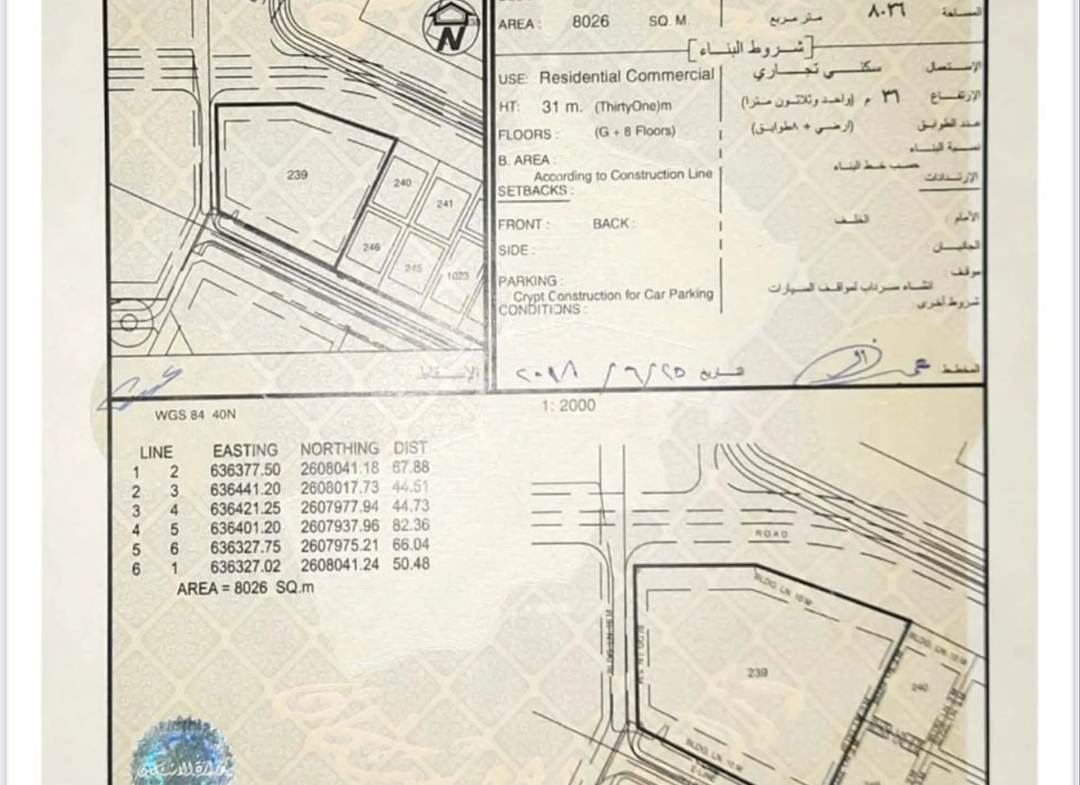 مساحة الأرض : 8026 متر مربع