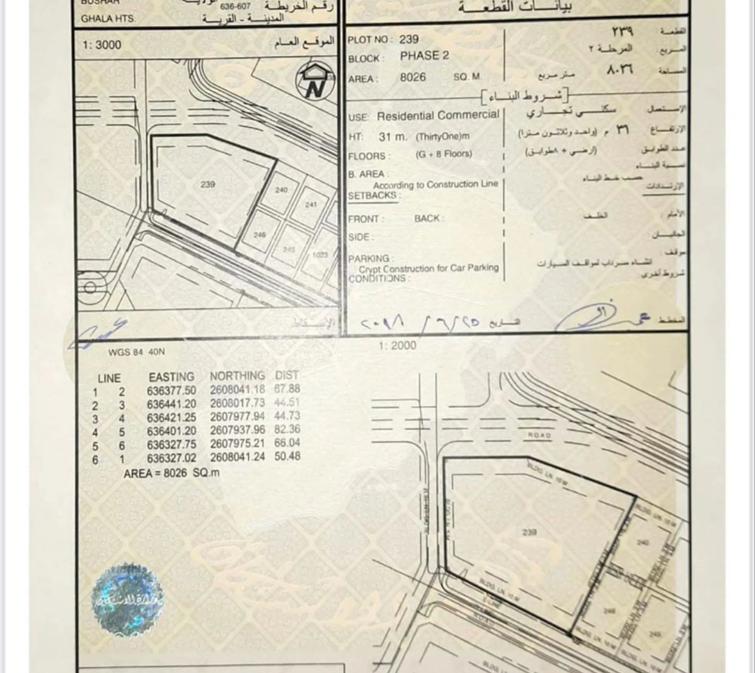 بالمركز التجاري والمالي بمسقط أرض تجارية للبيع بمرتفعات غلا بوشر