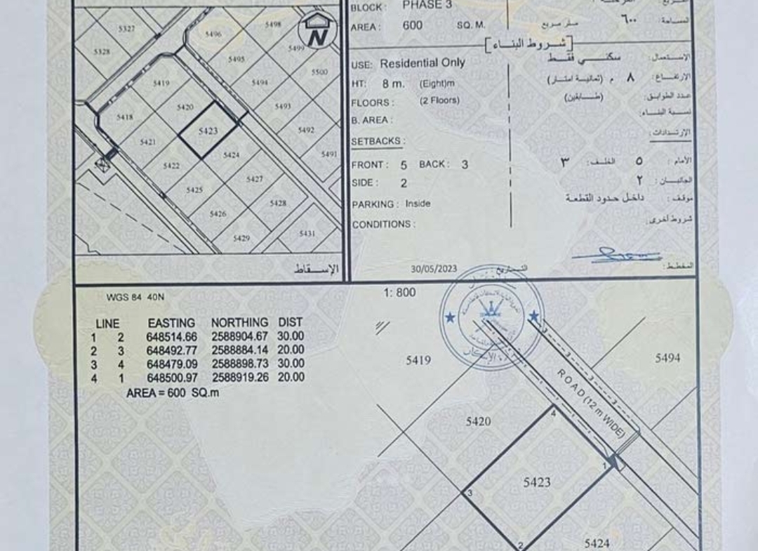 مميزات الأرض و الخدمات: بالقرب من منازل قائمة ، على شارع مرصوف ، جميلة ومستوية .