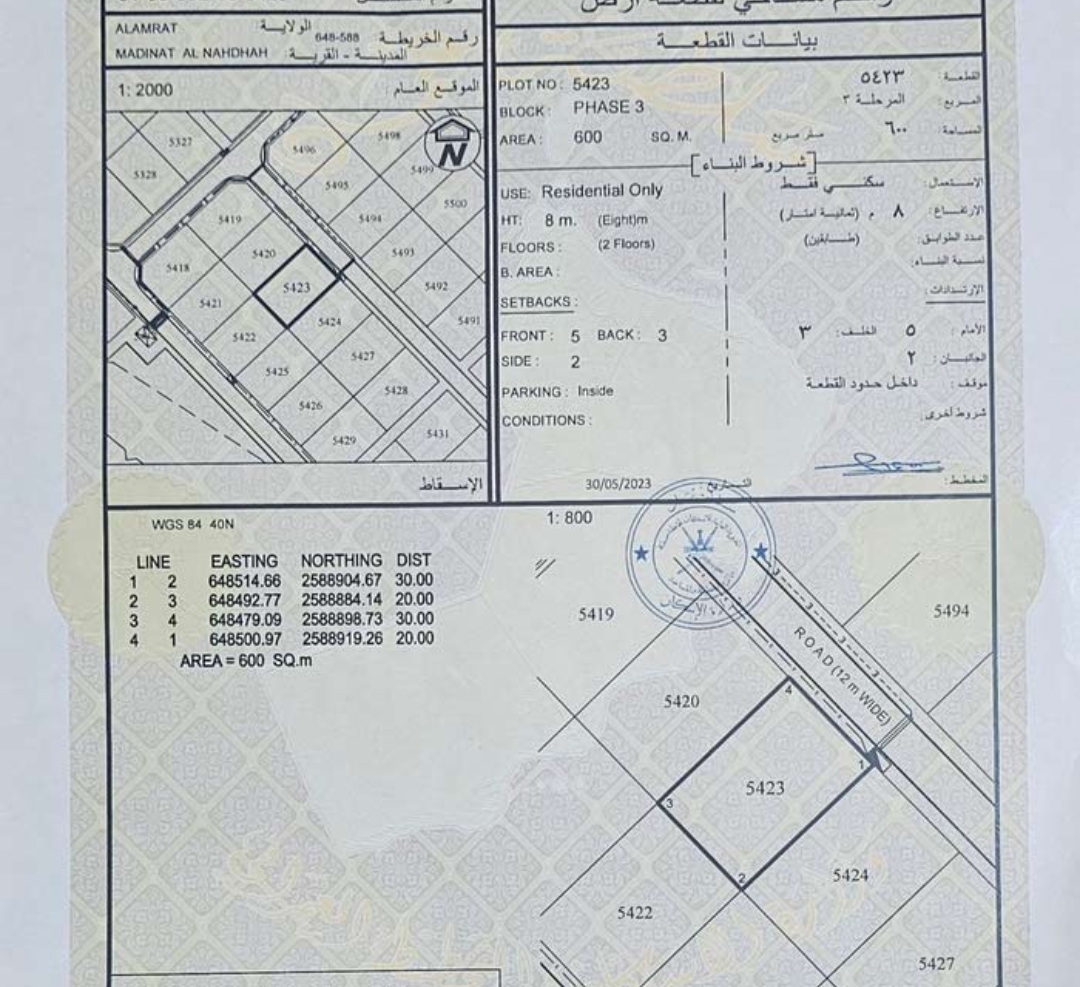 بمنطقة هادئة جدا أرض للبيع بمدينة النهضة العامرات