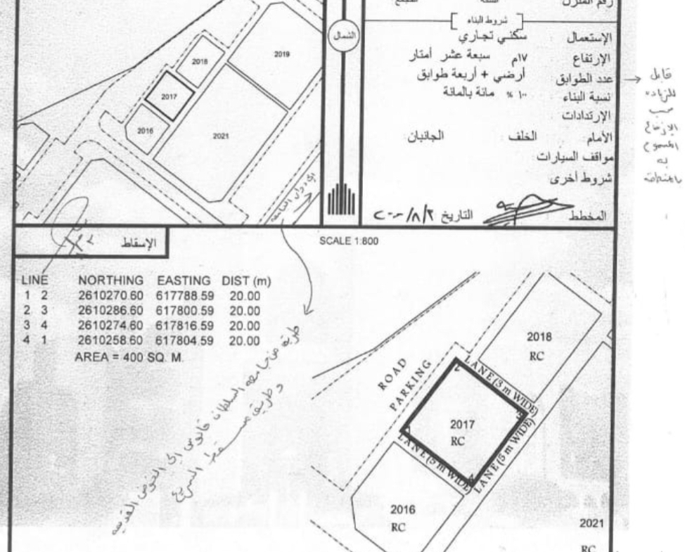 مميزات الأرض و الخدمات: مفتوحة من أربع جهات ، منطقة حيوية بالقرب من جامع الجلندى ، مصرح أرضي و4 طوابق.