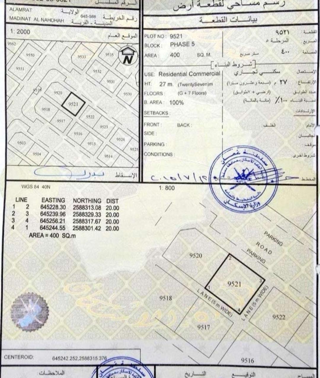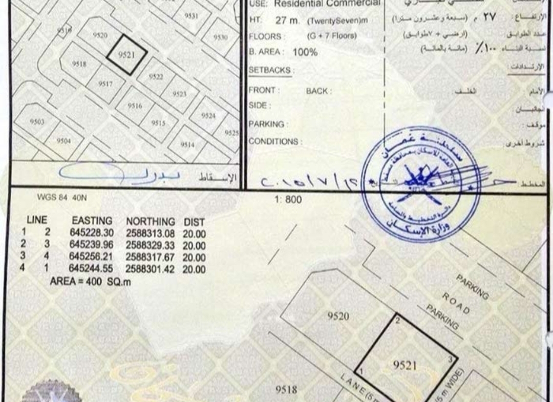 بجانب مسقط مول ومفتوحة 4جهات أرض تجارية للبيع