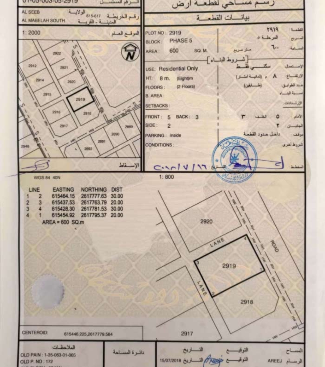 رقم الأرض : 2919