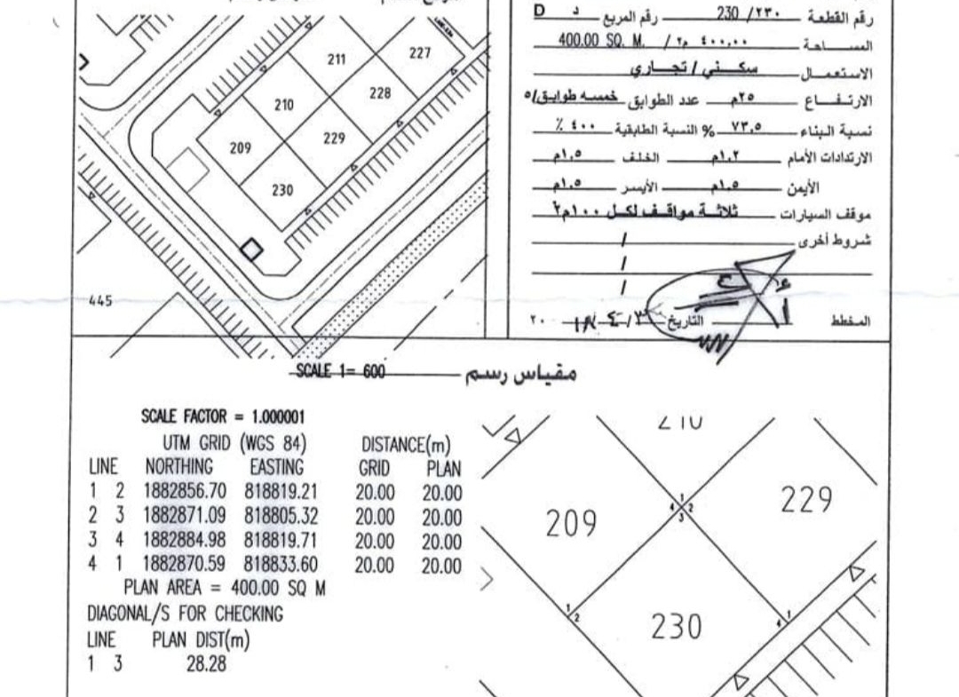 مميزات الأرض و الخدمات: مربع (د)التجاري وادي أدهان ،الصفة الاولى من الطريق الدائري 18نوفمبر ،يسمح ببناء محلات تجارية ومسموح بناء 5 أدوار .