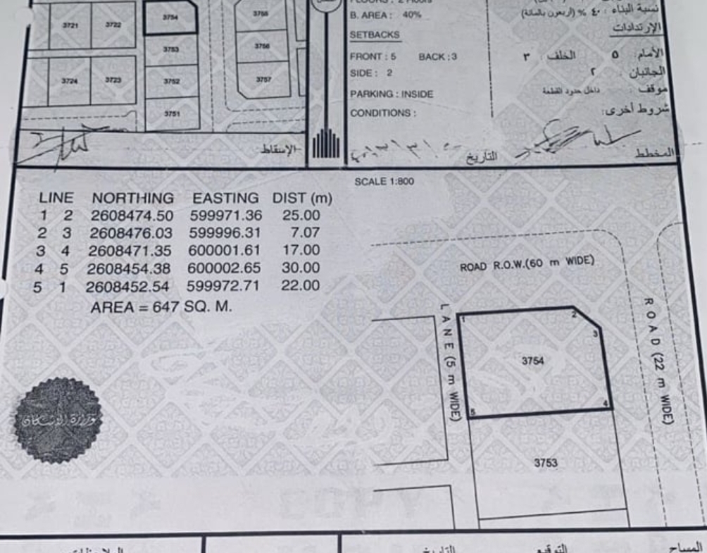 مميزات الأرض و الخدمات: على شارعين وسكة ، بالقرب من منازل قائمة .