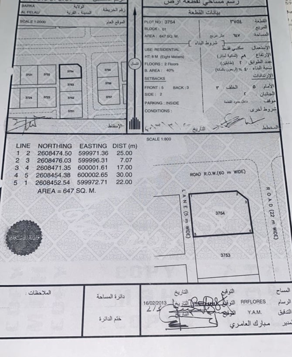 سوبر كورنر أرض للبيع بالفليج بركاء