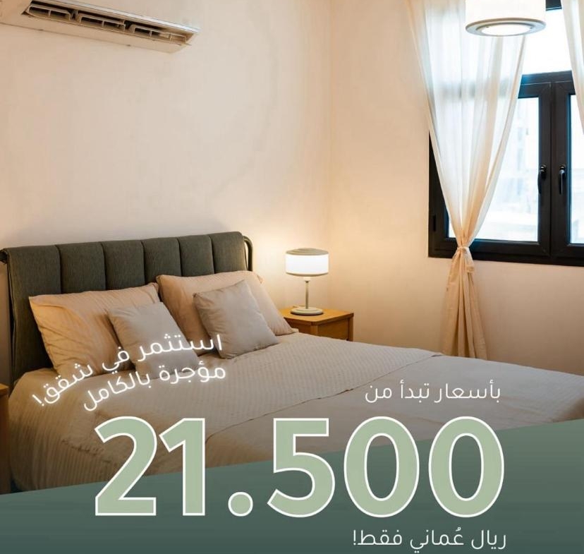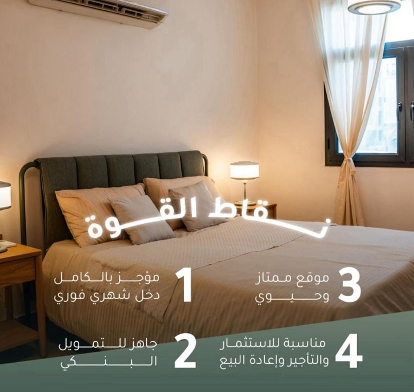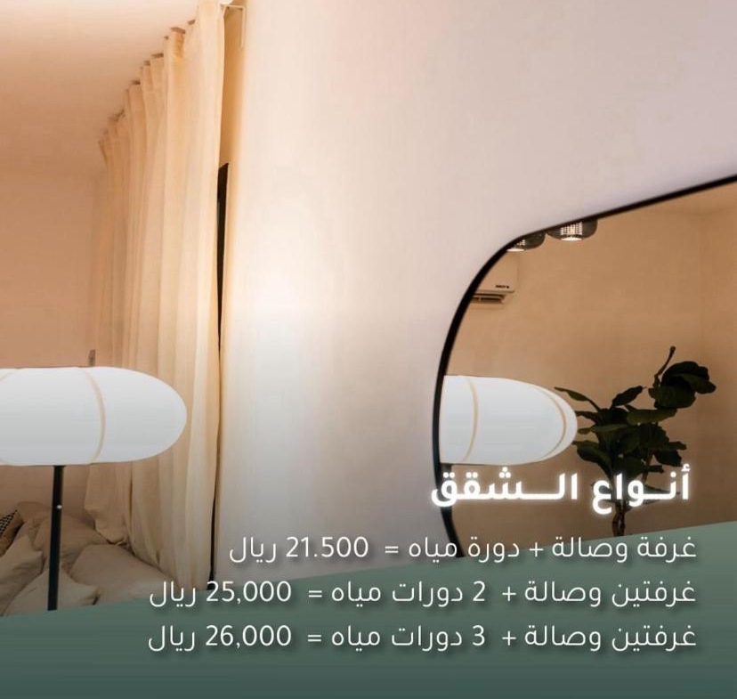 1 . شقة مكونة من غرفتين+ 3 دورات مياة + مطبخ و صالة