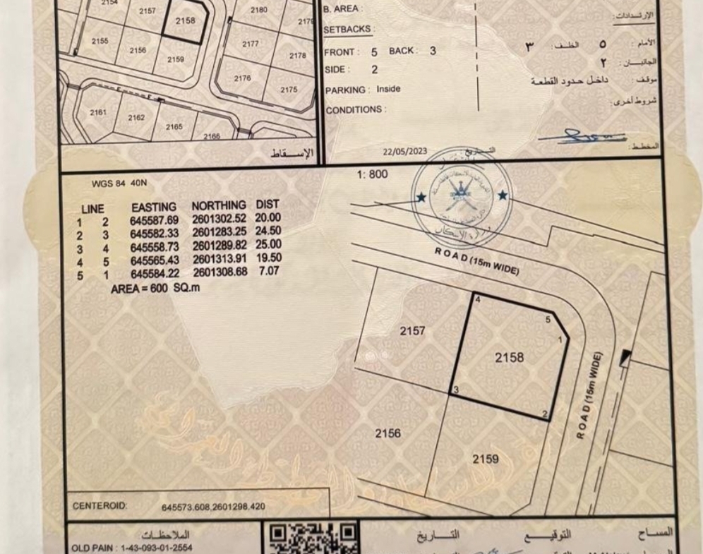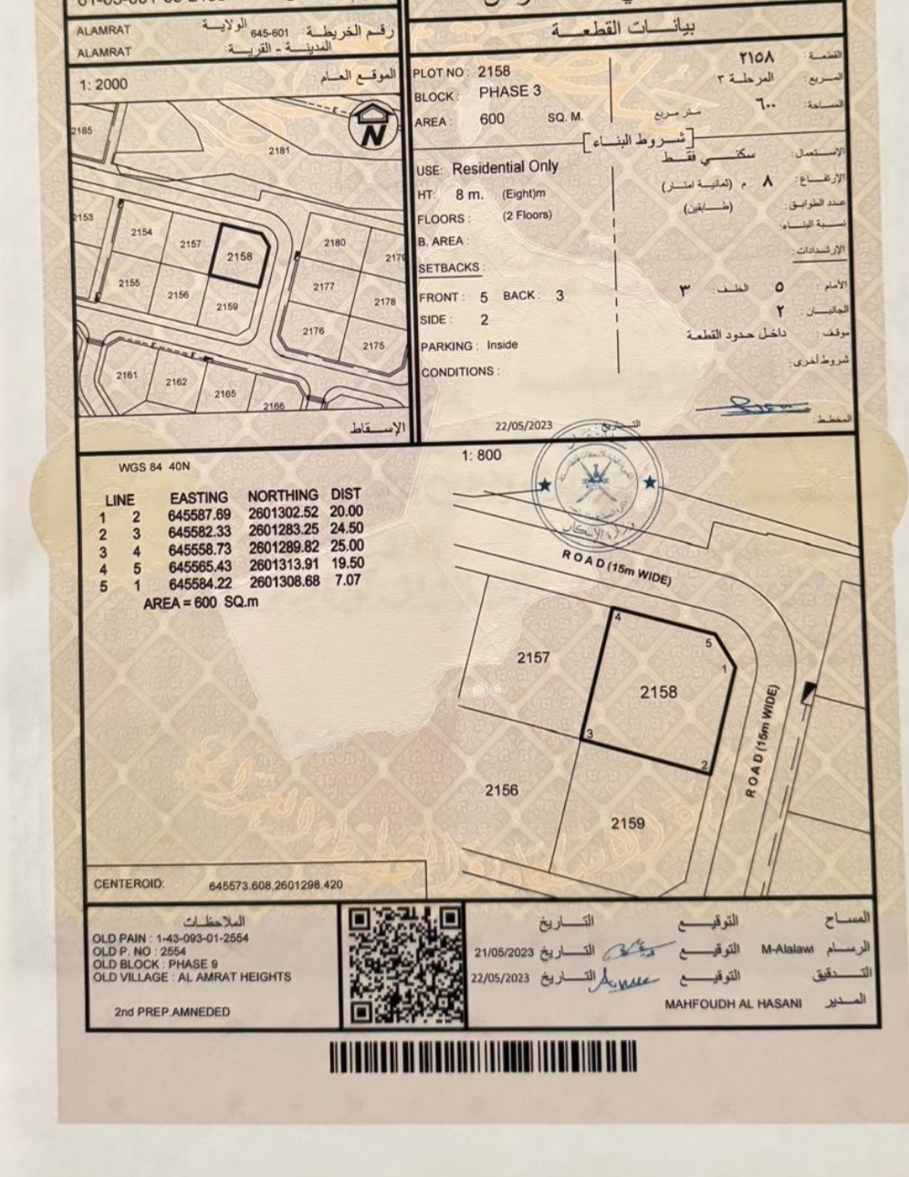 عرضية على شارعين أرض سكنية للبيع بالعامرات