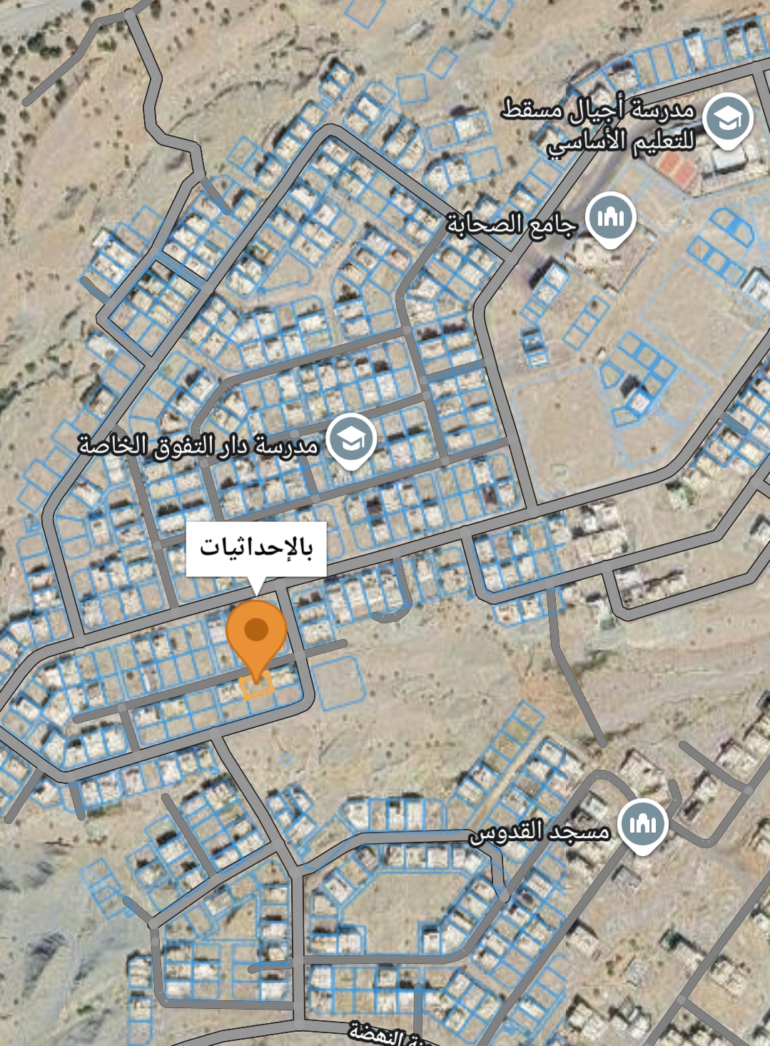 عرضية واجهة عريضة أرض للبيع بمرتفعات العامرات