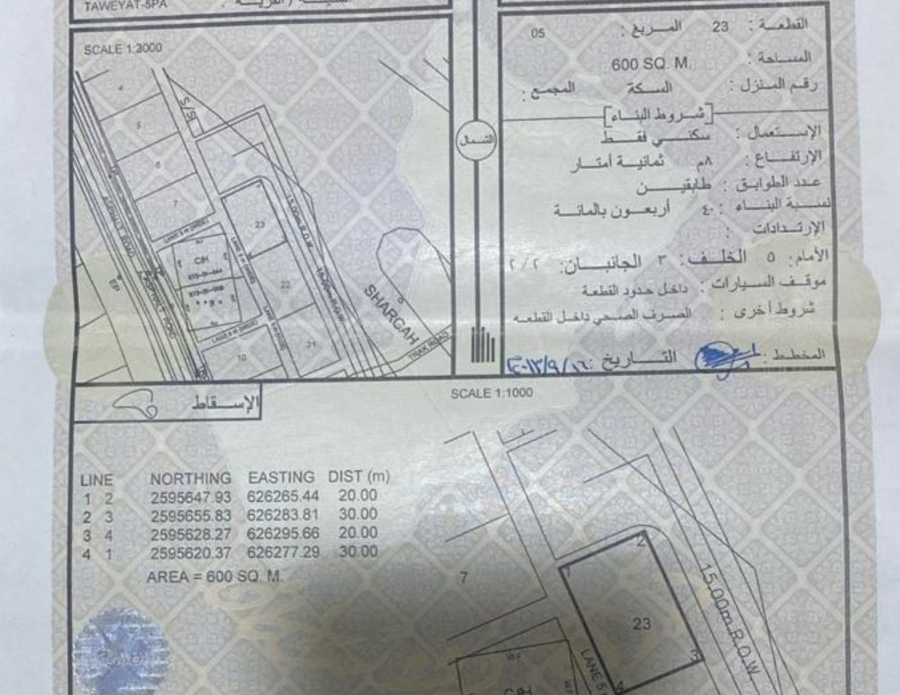 مميزات الأرض والخدمات: عرضية ، واجهة 30 متر مربع.