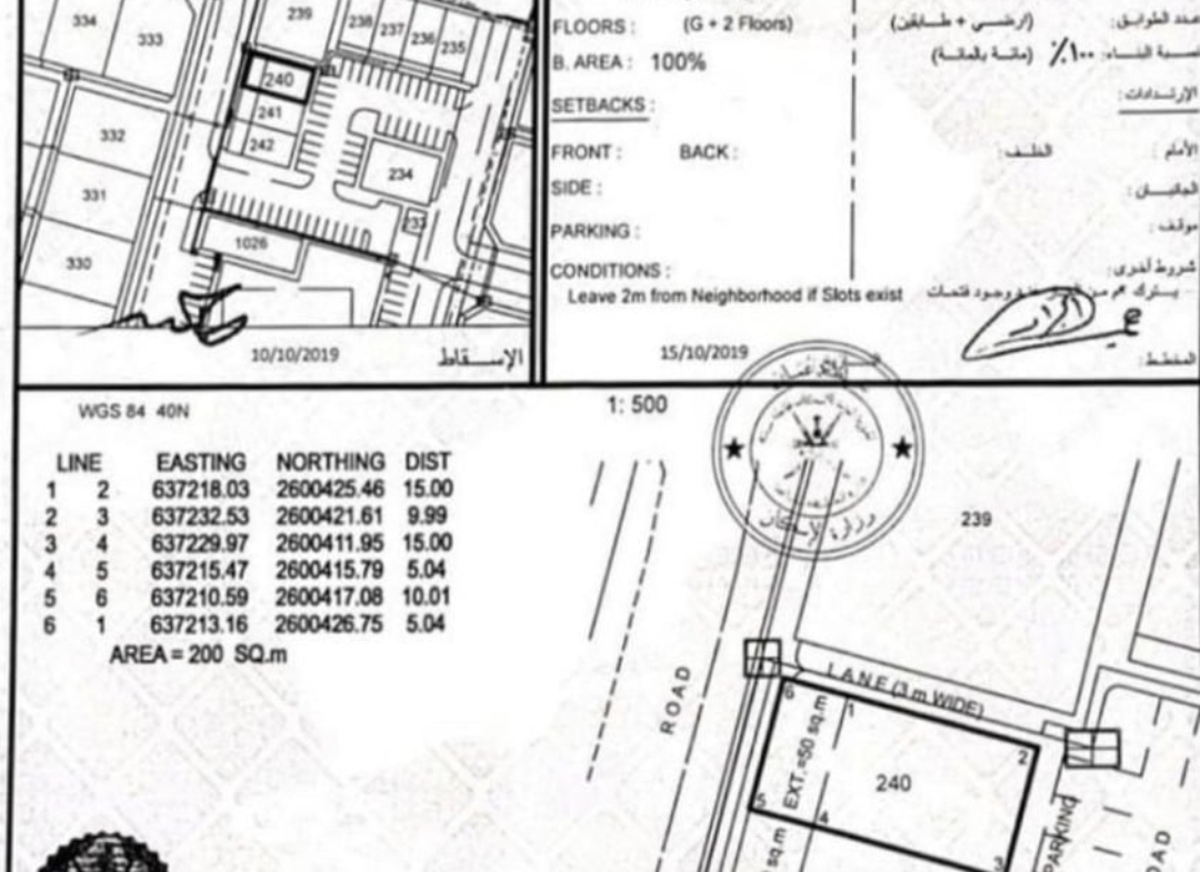مساحة الأرض : 200 متر مربع