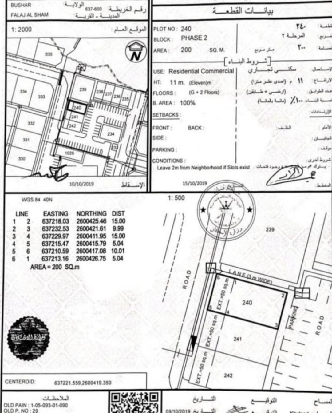 رقم الأرض : 240