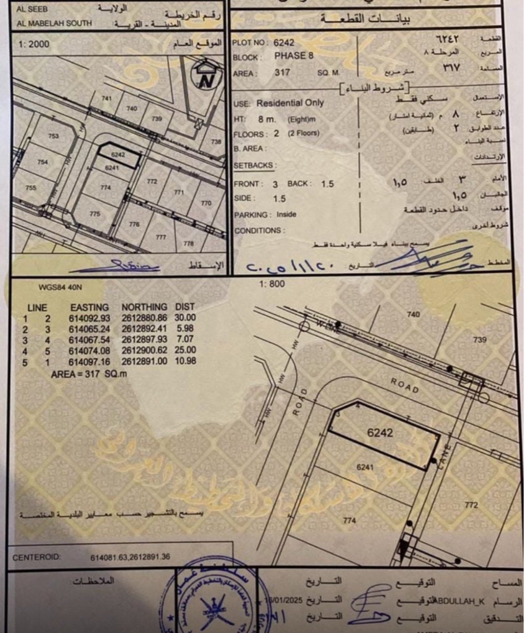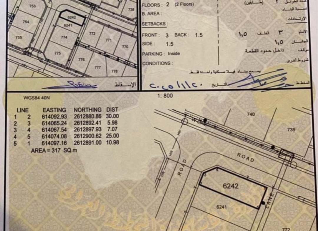 مميزات الأرض و الخدمات: مفتوحة من ثلاث جهات ، قرب جامع التواب وممشى المعبيلة ، على شارع مرصوف وقرب الخدمات .