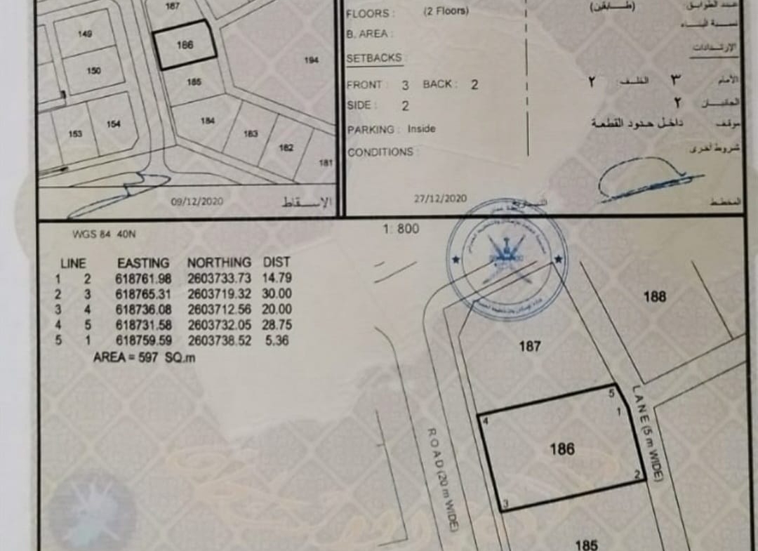 عرضية على شارع وسكتين أرض للبيع بالمعبيلة الجنوبية